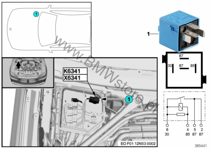 Przekaźnik odciąż. zapł./wtrys. K6341 dla BMW 5' F10 528i N53 Limousine ECE