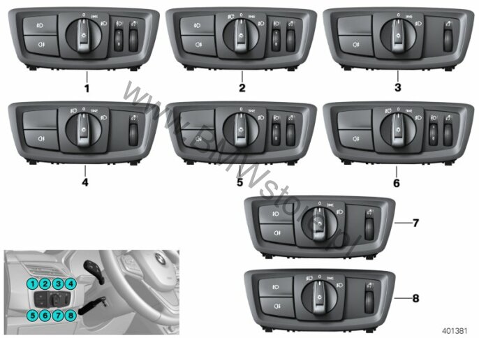 Dla samochodów z Wersja krajowa Japonia (L807A) = NIE i Adaptacyjny reflektor LED (S552A) = NIE i Reflektor LED (S5A2A) = NIE i Reflektory LED z rozszerzonym zakresem (S5A4A) = NIE i Driving Assistant (S5ASA) = NIE i Driving Assistant Plus (S5ATA) = NIE i Św.do jazdy dz.ustaw.przez m.świateł (S8TNA) = NIE Panel obsługi świateł 61 31 6 847 525 |