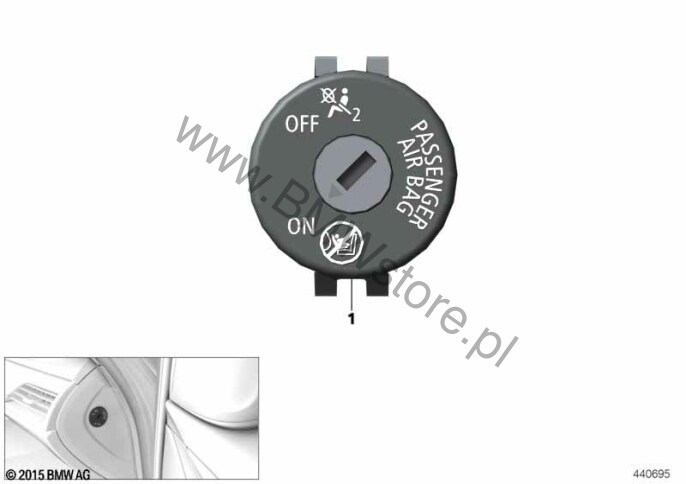 Dezaktywacja poduszki powietrznej pasaż. (05DA) = TAK Przełącznik poduszki powietrz. pasażera 61 31 9 483 731 |