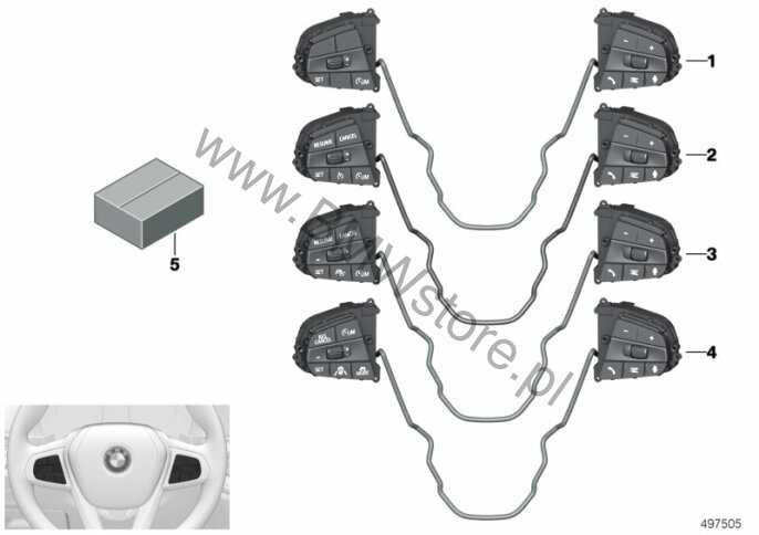 Dla samochodów z Driving Assistant Professional (S5AUA) = TAK i BMW Live kokpit Professional (S6U3A) = TAK i M Kierownica skórzana (S710A) = TAK Przełącznik kierownicy wielofunkcyjnej 61 31 9 461 227 |
