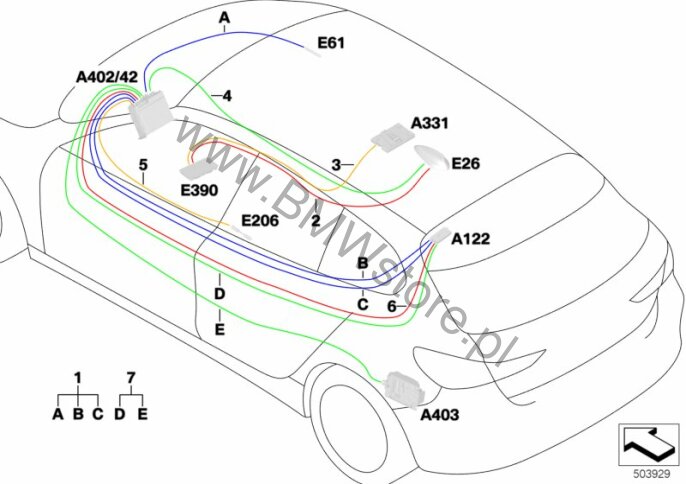 Dla samochodów z Teleservices (S6AEA) = TAK i Ustawowy numer awaryjny (S6AFA) = NIE Przewód anteny telefonu 61 11 9 432 770 |