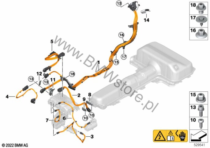 Wersja krajowa Korea (0802) = TAK Gniazdo ładowania, eksport (08BK) = TAK Wiązka kablowa WN gniazda ład.DC 61 12 5 B63 4C9 |