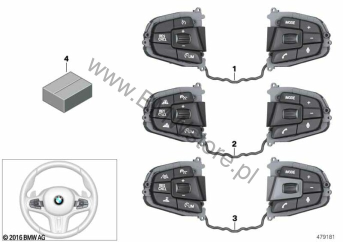M Kierownica skórzana (0710) = TAK Aktywna reg. prędkości+funkcja Stop&Go (05DF) = TAK 61 31 8 053 150  |