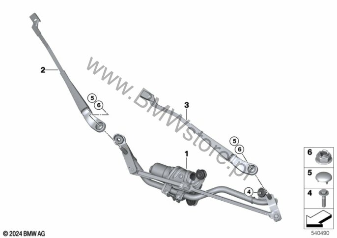 Zestaw drążków wycieraczki z silnikiem
