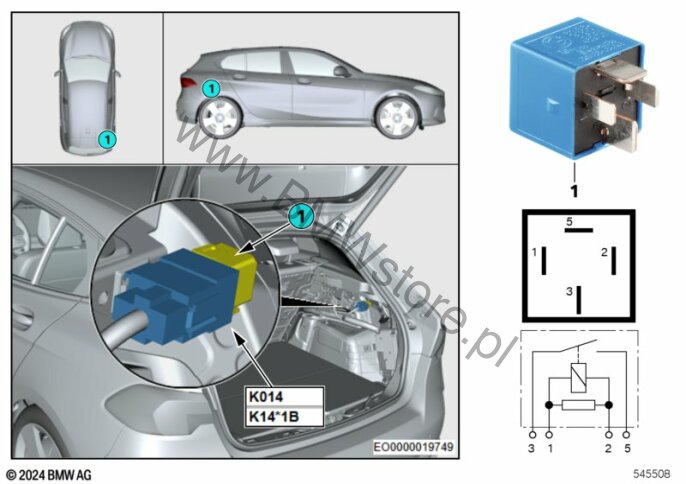 Przekaźn.klapki wlewu pal./ przycz. K14 dla BMW 1' F70 M135 xDrive 5-drzwiowy ECE