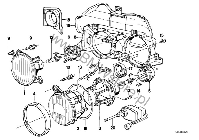 Elem. poj. reflektora dla BMW 7' E32 730iL M60 Limousine ECE