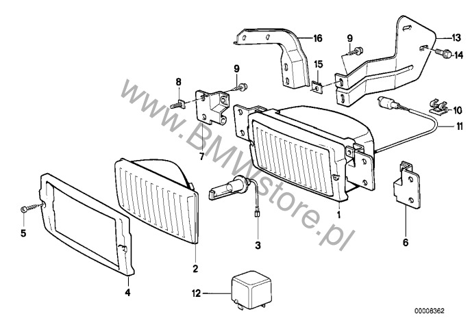 Reflektor przeciwmgłowy, poj. części dla BMW 6' E24 633CSi Coupé JAP