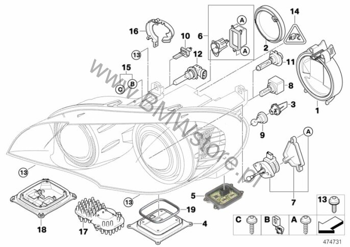 Dla samochodów z Światło ksenonowe (S522A) = NIE Żarówka 63 21 7 160 777 |