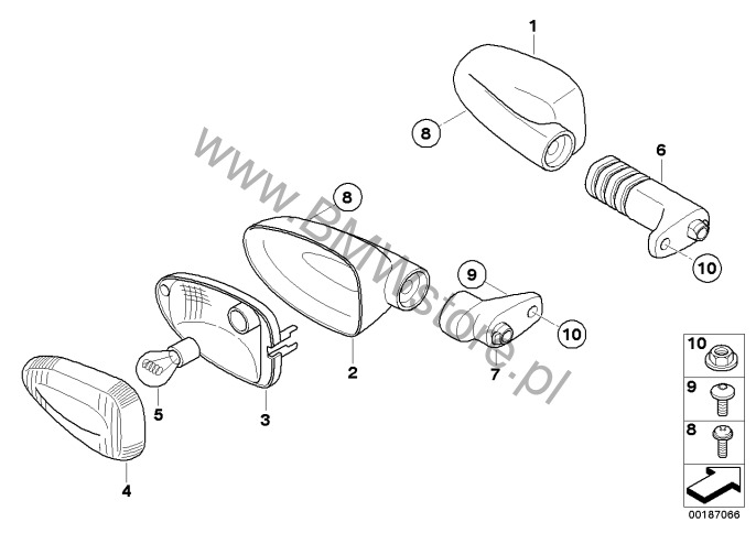Lampy kierunkowskazów białe dla BMW K25 (HP) HP2 Megamoto (0310,0320) ECE