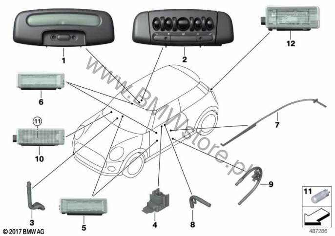 Oświetlenie wnętrza dookoła (04UR) = NIE Dach panoramiczny elektryczny (0402) = NIE Pakiet oświetlenia (0563) = NIE Oświetlenie wnętrza przednie 63 31 9 263 439 |