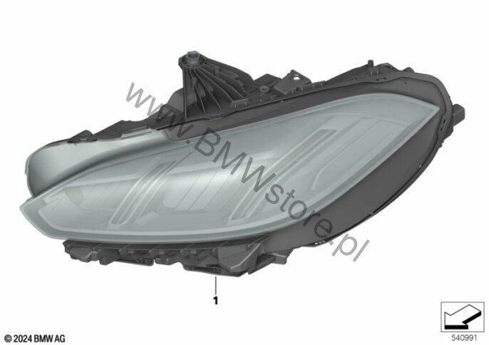 Oprawy M Shadow Line (03MF) = NIE Adaptacyjny reflektor LED (0552) = TAK Reflektor w technologii LED, prawy 63 11 5 A8E 2F4 tylko w połączeniu z: |