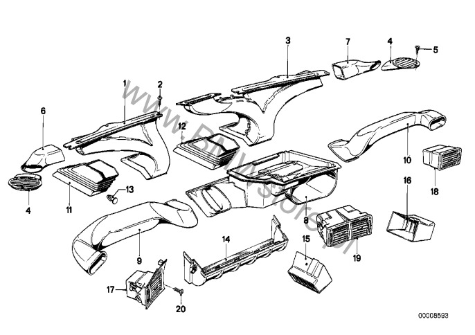 Dysze nawiewu/przesłony dla BMW 5' E28 518i Limousine JAP