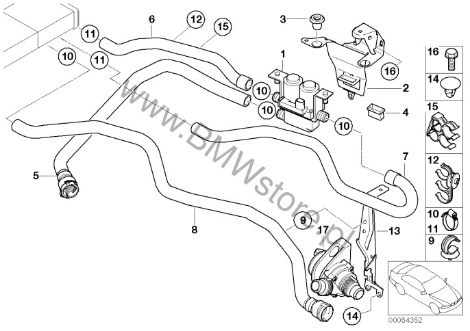 Dla samochodów z Urządzenie ogrzewania dodatkowego (S536A) = NIE Przewód dopływ siln.- zawór wodny 64 21 8 381 387 |