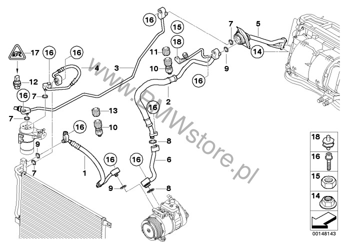Dla samochodów z Automatyczna skrzynia biegów (S205A) = TAK Przewód ssący parownik-przew. adapt. 64 53 3 414 555 |