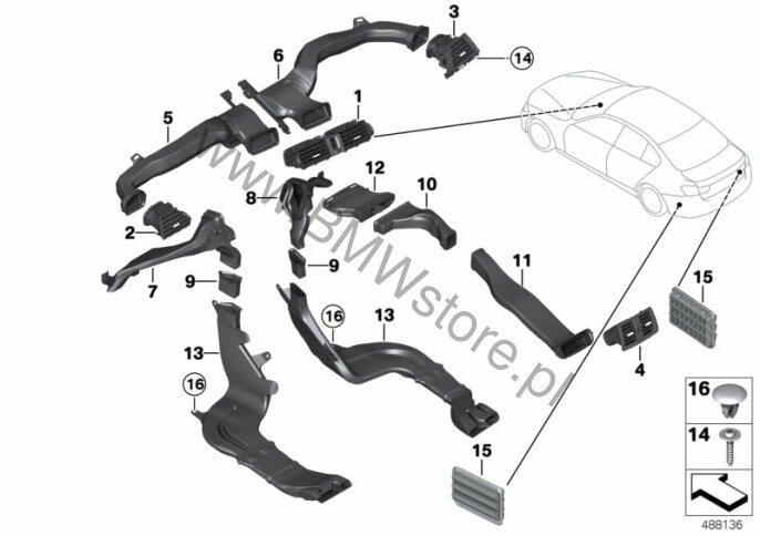 Dla samochodów z Klimatyzacja automatyczna (S534A) = TAK Kratka wlotu świeżego powietrza tylna 64 22 9 333 675 |