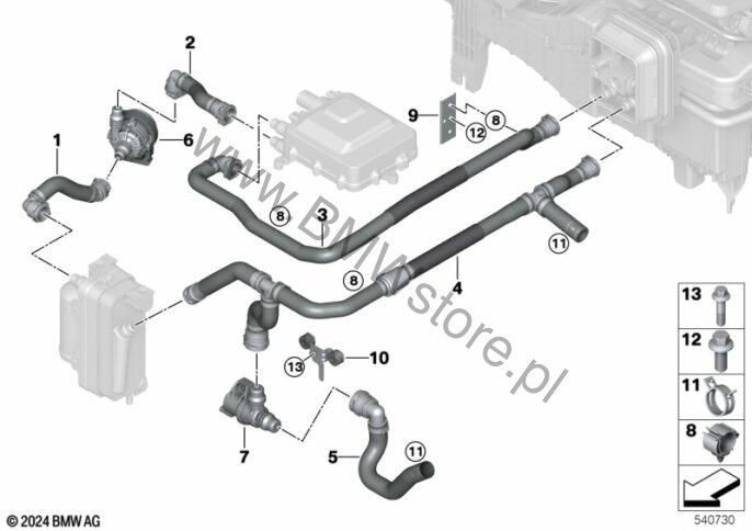 Węże płynu chłodz. dla Mini Cooper J01 Cooper E 3-drzwiowy ECE