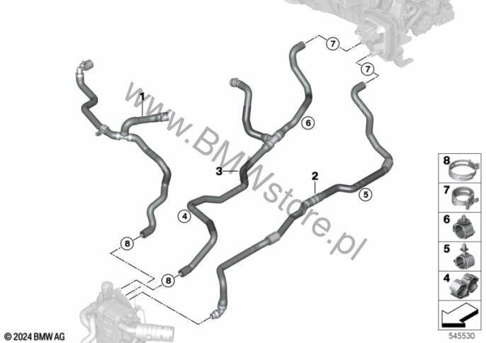 Elast. przewód płynu chłodz., powrotny