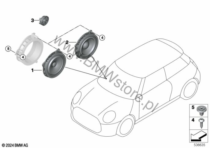 Elem. poj. głośnika drzwi przednie dla Mini F66 JCW 3-drzwiowy ECE