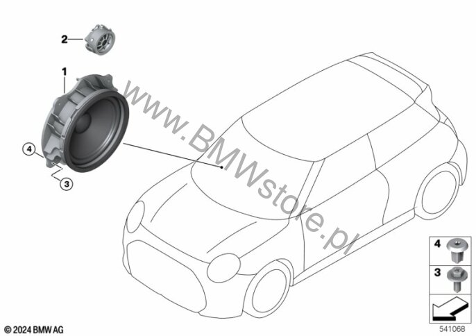 Elem. poj. głośnika drzwi przednie dla Mini Cooper J01 Cooper E 3-drzwiowy ECE