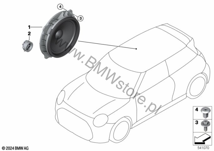 Poj. części głoś. ś. bocz./drzwi z tyłu dla Mini Cooper J01 Cooper E 3-drzwiowy ECE