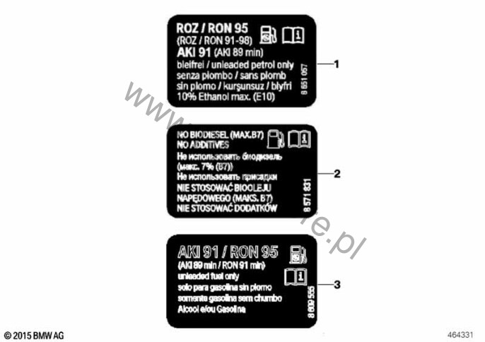 Tabliczka inf. "Paliwo" dla Mini F55 LCI Cooper S 5-drzwiowy ECE