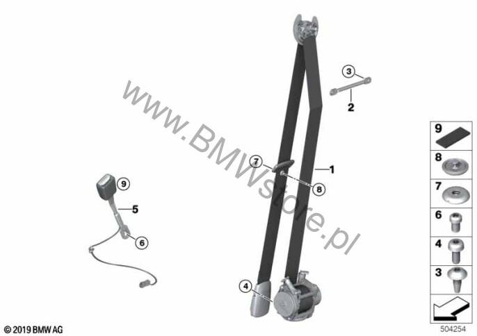 Wersja krajowa Korea (0802) = NIE M pasy bezpieczeństwa (04GQ) = NIE Górny pas, przedni prawy 72 11 7 456 264 Przy sprzedaży tego elementu bezpieczeństwa należy z przyczyn ustawowych wydrukować informacje o produkcie (patrz: Informacje o części -> Dodatek) i przekazać je klientowi. |