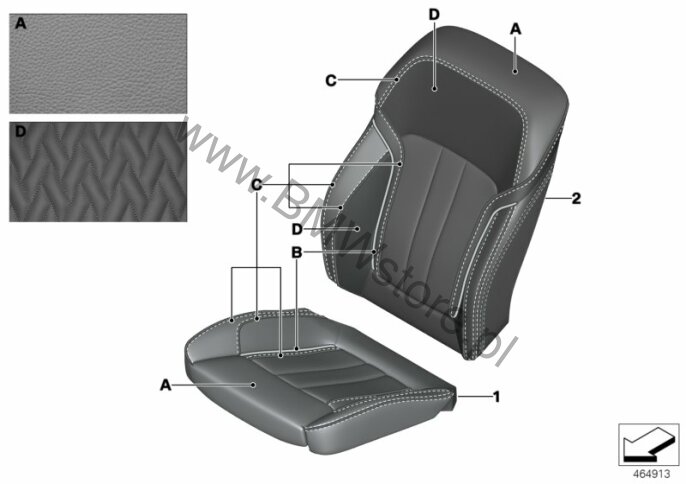 Dla samochodów z Fotel komfort z pamięcią (S456A) = TAK i Tapicerka specj./bez danych o kolorach (Z1XX) = TAK lub Indi.skóra rozszerzone/caramel (ZACR) = TAK lub Ind. skóra rozszerz./rauch-weiss (ZAFU) = TAK lub Indi.skóra rozszerzone/tartufo (ZATQ) = TAK lub Ind. skóra pełna/caramel (ZBCR) = TAK lub Ind. skóra pełna/rauch-weiss (ZBFU) = TAK lub Ind. skóra pełna/tartufo (ZBTQ) = TAK Poszycie siedz. komfort, skóra 52 10 7 989 148 |