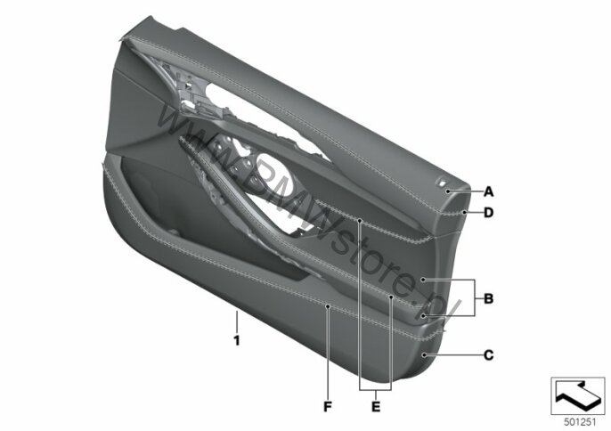 Dla samochodów z Tapicerka specj./bez danych o kolorach (Z1XX) = TAK lub Ind.pełna skóra/"kość słon./nieb.Nacht" (ZBEI) = TAK lub Ind.pełna skóra/"kość słon./tartufo" (ZBEJ) = TAK lub Ind.pełna skóra/"kość słon." (ZBEX) = TAK lub Ind.pełna skóra/"niebieski nacht/czarny" (ZBHX) = TAK lub Ind.pełna skóra/"tartufo/czarny" (ZBHY) = TAK lub Ind.pełna skóra/"czerwony fiona/czarny" (ZBHZ) = TAK lub Ind./skóra pełna/"cognac" (ZBRI) = TAK lub Ind. skóra pełna/"czarna" (ZBSW) = TAK Tapicerka drzwi, skóra, przednia lewa 51 41 7 997 077 |