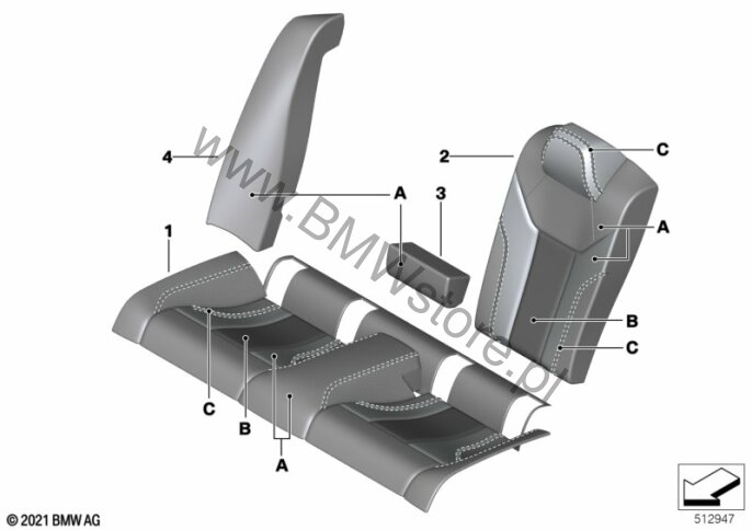 Ind. wyposażenie w pełnej skórze (ZB) = TAK Tapicerka specj./bez danych o kolorach (Z1XX) = TAK Ind. rozszerz. wyposażenie skórzane (ZA) = TAK Poszycie oparcia, tył, prawe, skóra 52 20 7 993 822 |